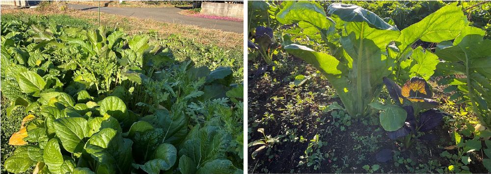 霜が降りてもこの元気、味も濃いです。勿論、無肥料・無農薬
